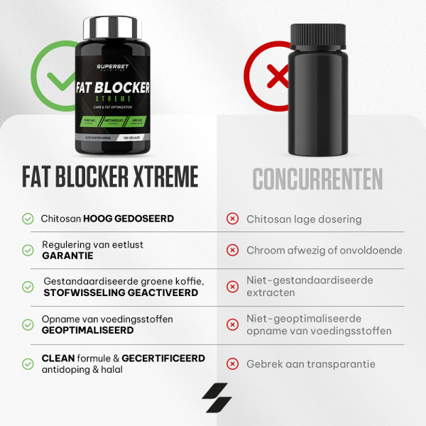 Ingrediënten: chitosan(schelpdieren) 47%, groene koffieboon extract(Coffea robusta) 18%, vulstoffen (cellulose gel, calcium fosfaten), capsule omhulsel (gelatine), antiklontermiddelen (magnesiumzouten van vetzuren, siliciumdioxide), zwarte peper fruitextract(Piper nigrum) 0,068%, chroom (III) chloride.