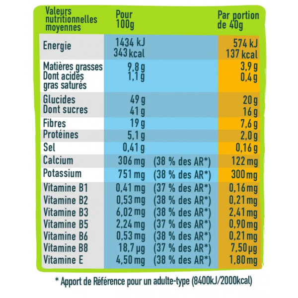 | Per 100 g | AR%* | Voor 40 g | |