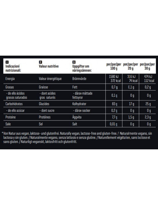 Begeleid dit tussendoortje met vers fruit, noten, wei-eiwit of een paar smaakdruppels (smaakdruppels 50ml) - elke combinatie is mogelijk! Je kunt de consistentie van je tussendoortje zelf bepalen, of je het liever romig of dik hebt. Deze rijstpudding is rijk aan koolhydraten met 17 g koolhydraten per portie van 20 g, waardoor je een consistente bron hebt voor of na je training.