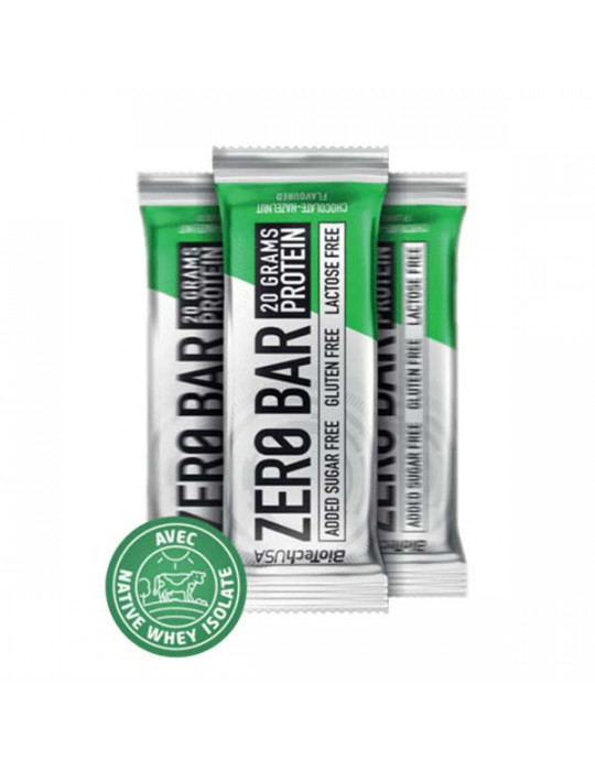 De doos Zero Bar (20x50g) van het merk Biotech USA zijn heerlijke eiwitrepen. Ze bevatten veel eiwitten uit wei-isolaat en eiwit.