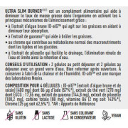 Ultra Slim Burner bevatID-alG™ bruin zeewierextract, dat inwerkt op vet door de opname ervan te helpen verminderen. Het bevat ookgroene thee-extract, dat thermogenese bevordert, vetafbraak en de omzetting ervan in energie activeert, enguarana-extract. Thermogenese verhoogt de lichaamstemperatuur om de stofwisseling te stimuleren en meer calorieën te verbranden. Het chroom in deze vetverbrander is betrokken bij de stofwisseling van macronutriënten (suikers en vetten), terwijlpilosella-extract helpt de afvoer en afvoer van water te verbeteren, waardoor het vasthouden van water wordt beperkt.