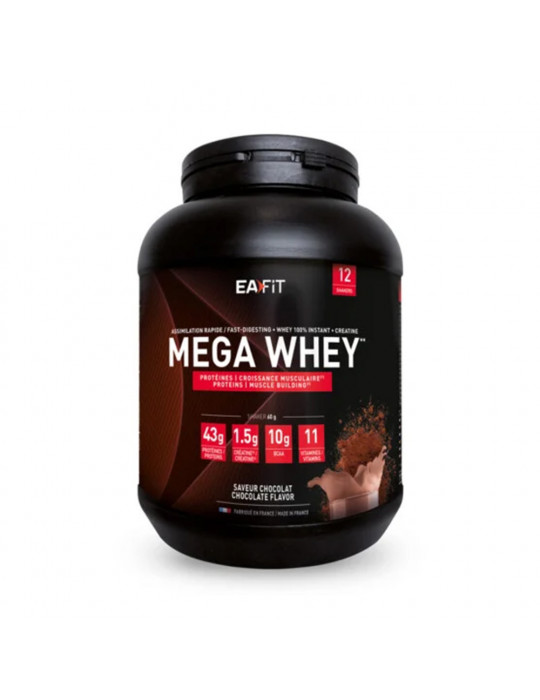 Mega Whey (750g) is een eiwit ontworpen door het merk EAFIT, ontwikkeld in hun laboratoria door voedingsspecialisten. Het is ideaal voor mensen die spiergroei willen stimuleren, vooral na het bereiken van een plateau. Deze formule maakt gebruik van twee hoogwaardige microfiltratietechnieken om een consistente eiwitkwaliteit te garanderen.