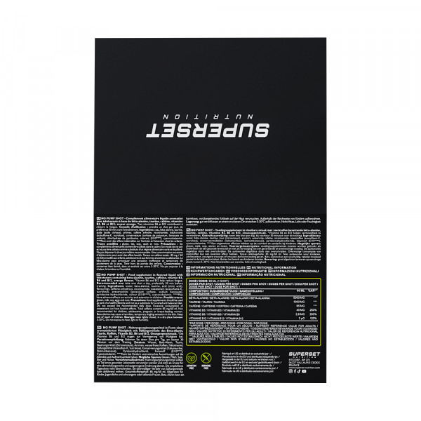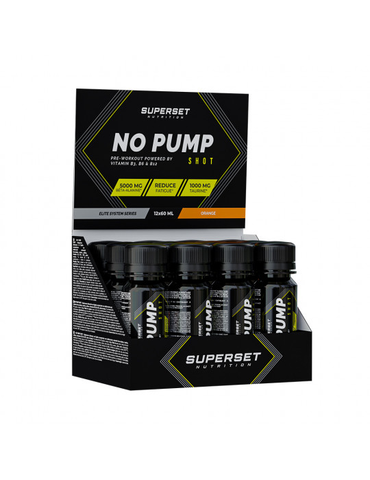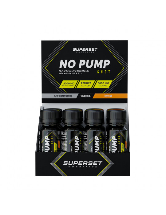 Het NO PUMP shot doosje (12X60ML) van Superset Nutrition is ontworpen om je prestaties tijdens de training te ondersteunen. Met belangrijke ingrediënten per shot, zoals:
