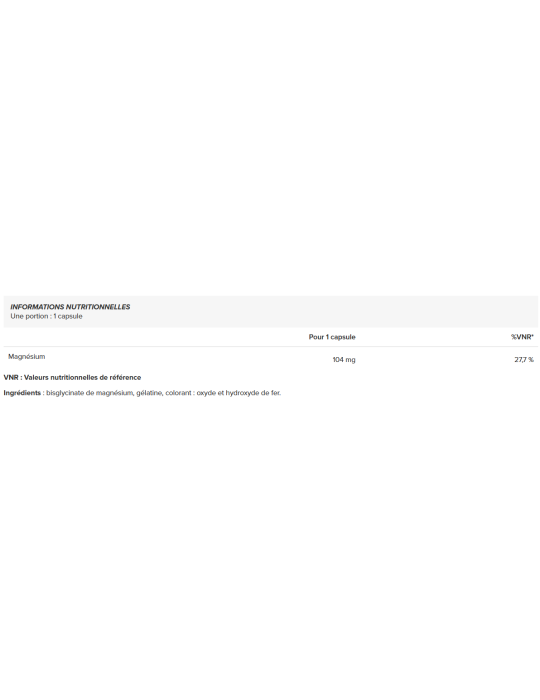 Ingrediënten : magnesiumbisglycinaat, gelatine, kleurstof: ijzeroxide en -hydroxide.