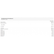 Ingrediënten: water, stabilisator: glycerol, fructose, maca-extract (lepidium meyenii-wortel), guarana-extract (paullinia cupana-zaad), zuurteregelaar: citroenzuur, l-carnitine, l-arginine, acerolasappoeder (malpighia glabra-vrucht), taurine, gemberextract (zingiber officinale-rhizoom), aroma : sinaasappel, ginsengextract (panax ginseng meierwortel), conserveermiddelen: kaliumsorbaat, natriumbenzoaat, antioxidant: ascorbinezuur, vitamine B3 (niacinamide), vitamine B5 (calcium d-pantothenaat), vitamine B12 (cyanocobalamine), vitamine B6 (pyridoxine hydrochloride), vitamine B2 (riboflavine), vitamine C.