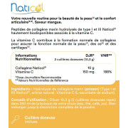 Ingrediënten: Hydrolisaat van marien collageen (vis) (type I en III) Naticol®, natuurlijk aroma, Vitamine C (natrium-L-ascorbaat).
