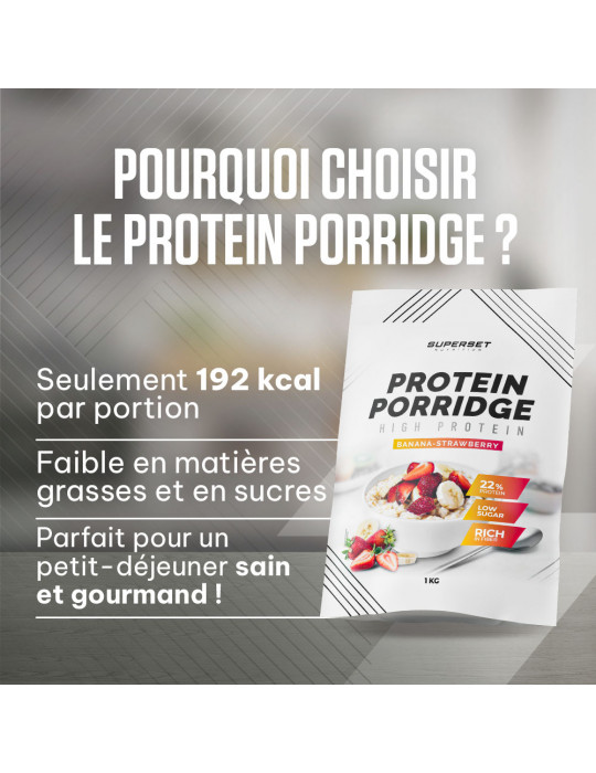 - Bovendien zorgt PROTEIN PORRIDGE (1KG), rijk aan proteïnen, voor een evenwichtig ontbijt om je dag goed te beginnen.