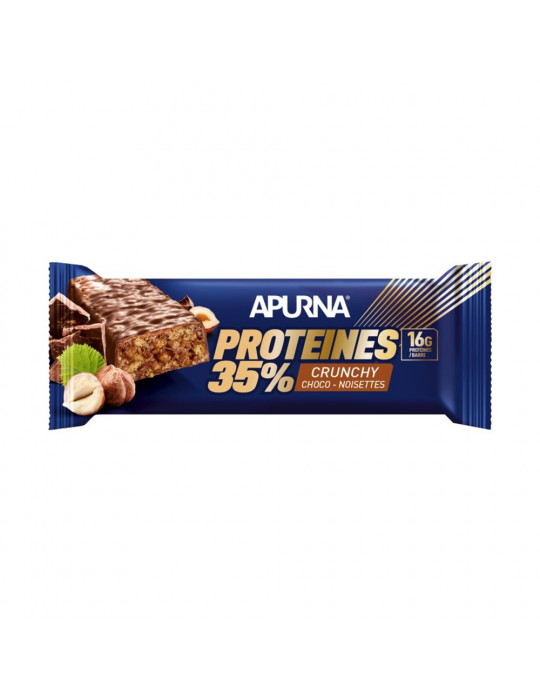 De 45g Eiwitreep 35% Crunchy van Apurna is de perfecte snack voor sportievelingen en actieve mensen die hun eiwitinname willen verhogen terwijl ze genieten.