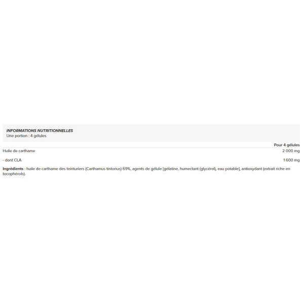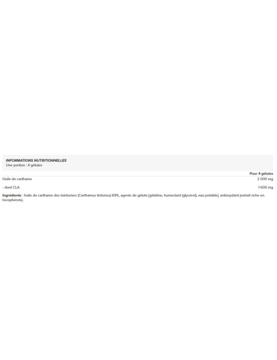 Ingrediënten: saffloerolie (Carthamus tintorius) 69%, capsuleermiddelen [gélatine, humectant (glycérol), eau potable], antioxidant (extract rijk aan tocoferolen).
