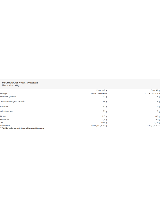 Vitamine C | 30 mg (37,4 %***) | 12 mg (15 %***) |