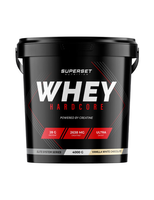 Ingredienten Vanille Witte Chocolade smaak :Weiproteïneconcentraat (melk) {eiwitconcentraat (melk), emulgator [lecithinen (soja)]}, gemicroniseerd creatinemonohydraat 8,3%, taurine 2,7%, aroma's, zout, verdikkingsmiddel (xanthaangom), zoetstoffen (sucralose, acesulfaam k), zinksulfaat, wei-eiwitisolaat (melk) instant {eiwitisolaat (melk), emulgator [lecithinen (soja)]}, ananasbromelaïne 0,03% (1200 gdu/g), papaja papaïne 0,03% (1,5 fip u/mg), vitamine D (cholecalciferol).