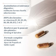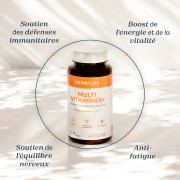 Herwin je energie en vitaliteit met Multivitamines+ van het Franse merk Nutraclear, een complete formule die 22 natuurlijke actieve ingrediënten combineert: vitaminen, mineralen, spirulina, ginseng en bijenkorfproducten. Verrijkt met PureWay-C® vitamine C, zorgt het voor een optimale opname voor een maximaal effect.