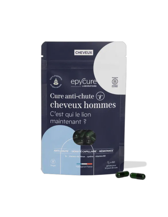 Epycure's anti-haaruitval behandeling voor mannen (60 capsules) is speciaal samengesteld om hormonale haaruitval tegen te gaan, de meest voorkomende oorzaak van haaruitval bij mannen (alopecia androgenica).