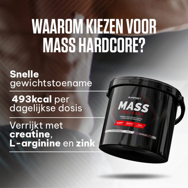 Ingrediënten chocoladesmaak maltodextrine 52%, instant wei-eiwitconcentraat (melk) {instant wei-eiwitconcentraat (melk), emulgator [lecithinen (soja)]} 14%, inuline 6,1%, calciumcaseïnaat (melk) [calciumcaseïnaat (melk), emulgator (mono- en diglyceriden van vetzuren)] 5,8%, wasachtig maïszetmeel 5,1%, ontvette cacaopoeder, l-arginine hydrochloride 2,8%, verdikkingsmiddel (cellulosegom), gemicroniseerd creatinemonohydraat 2,6%, instant wei-eiwitisolaat (melk) {wei-eiwitisolaat (melk), emulgator [lecithinen (soja)]} 2,5%, emulgator [lecithinen (soja),] aroma's, zout, zoetstof (sucralose), zinkbisglycinaat, ananasbromelaïne (1200 GDU/g) 0,03%, papaja papaïne (1,5 FIP U/mg) 0,03%.