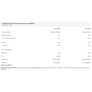 Ingrediënten - Appel & Framboos: wei-eiwitisolaat(melk), collageenpeptiden, natuurlijk aroma, vitamine C, zoetstof (sucralose), bietenconcentraat, vitamine D, kleurstof (riboflavine).