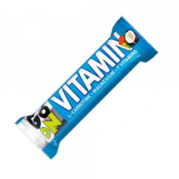 De doos Vitamin Bar Go On Nutrition bevat 24 energierepen van 45 g, met kokossmaak omhuld met melkchocolade, ideaal voor sporters en actieve mensen die op zoek zijn naar een snack die zowel lekker als functioneel is.