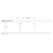 Ingrediënten: Albion® Mineralen magnesiumbisglycinaat, vegetarische capsule (omhulsel: hypromellose), taurine, acaciavezel (Acacia senegal), pyridoxaal-5-fosfaat (vitamine B6).