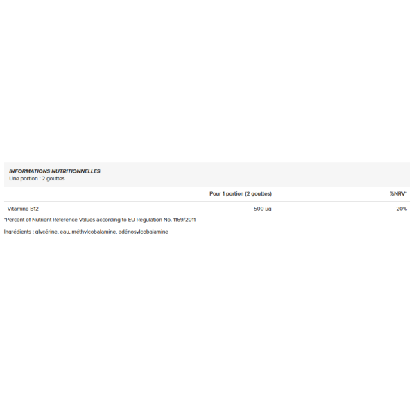 Elke portie levert een hoge dosis vitamine B12, in een zeer goed opneembare vorm die gemakkelijk af te meten is dankzij het druppelformaat. Vitamine B12 draagt bij tot een normale werking van het zenuwstelsel, een normaal energiemetabolisme, een normale vorming van rode bloedcellen en verminderde vermoeidheid. Het speelt ook een rol in de normale werking van het immuunsysteem.