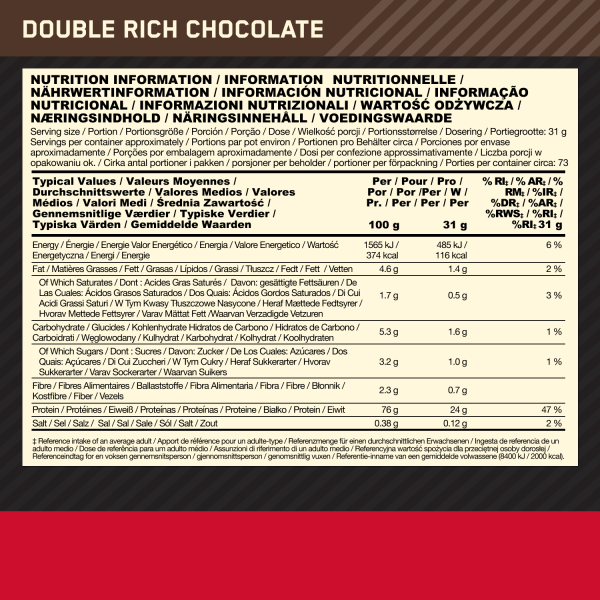 Dankzij de samenstelling is Whey Gold Standard eiwit van optimale kwaliteit en zal het effectief helpen bij de spierontwikkeling. Het bevat slechts 1,3 g koolhydraten en 1,4 g vet per portie, wat erg laag is en helpt om de suikerinname zoveel mogelijk onder controle te houden, vooral tijdens periodes van vetvrije spieropbouw.