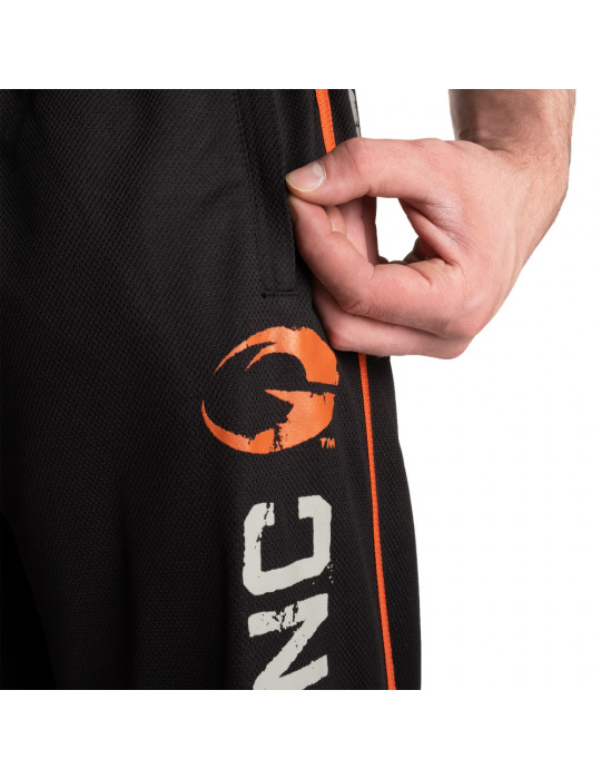 Estão decoradas com grandes impressões do logótipo à frente e atrás. As costuras em contraste nos lados e a marca muito fixe na frente tornam estas calças muito elegantes!