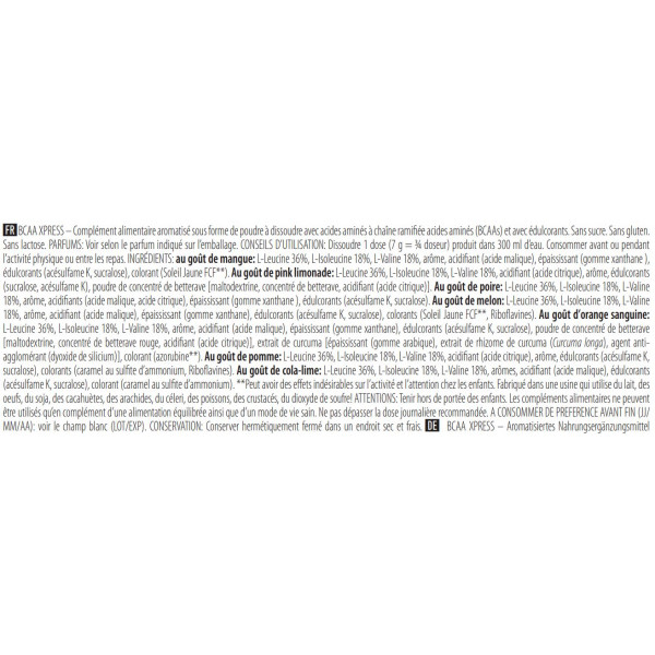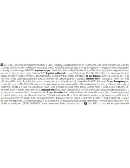 Como o seu nome indica, a fórmula BCAA Xpress contém BCAA ou aminoácidos de cadeia ramificada (Leucina, Isoleucina, Valina), aminoácidos que constituem 35% dos aminoácidos presentes no músculo.
