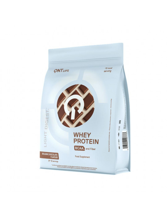 Qual é a sua vantagem? Mistura-se facilmente com água ou leite e é ultra-digerível graças à presença da fibra inulina (extraída da raiz de chicória) e à escolha da proteína isolada de soro de leite. Bónus: Light Digest Whey Protein não contém glúten para as pessoas intolerantes ao glúten ou que desejam excluí-lo temporariamente da sua alimentação.