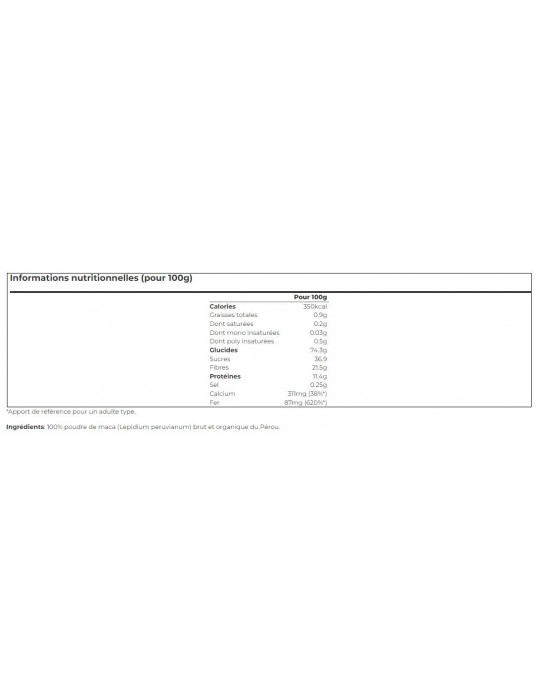 Maca é um suplemento alimentar que é uma fonte de energia e rico em benefícios. O maca, também conhecido como ginseng peruano, é um potente tónico geral que actua um pouco como uma planta adaptogénica. Rico em proteínas e vitamina C, o pó de maca contém igualmente antioxidantes, cálcio e magnésio. A presença de gorduras boas do tipo ómega 3 ajuda a reduzir o stress.
