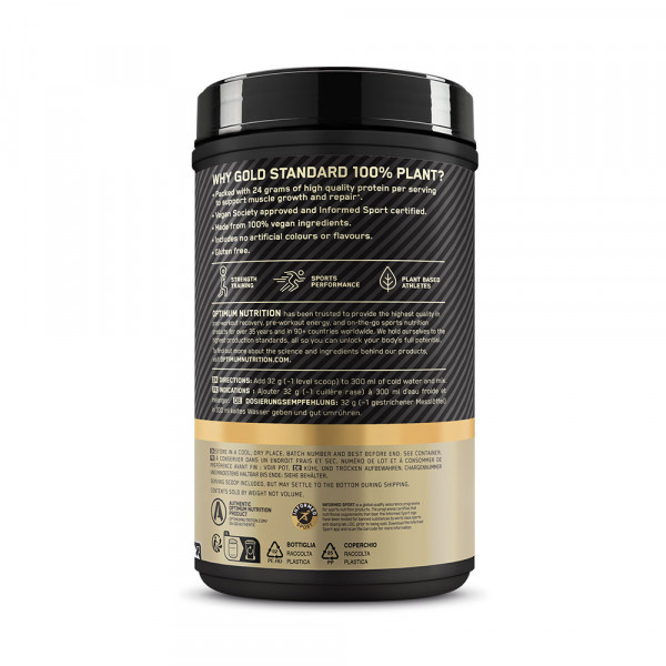 Descubra a nova Gold Standard 100% Plant. Idealmente doseada com 24g de proteína 100% vegetal por dose, é provavelmente uma das proteínas vegetais mais ricas.