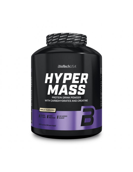 Biotech Hyper mass (2,27kg) com adoçante satisfaz as necessidades calóricas acrescidas dos utilizadores de massa, combinando ingredientes de qualidade.