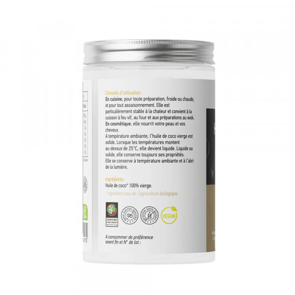 Utilize-o todos os dias para grelhar as suas carnes e legumes, para preparar os seus woks ou para adicionar às suas receitas.O óleo de coco virgem biológico é saboroso e bom para a sua saúde! Utilize-o em pratos salgados ou em pastelaria.