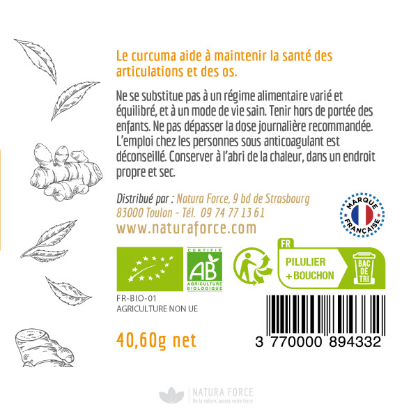 A curcuma é um membro da família do gengibre e é cultivada há séculos na Ásia. A curcuma de Natura Force a curcuma é um superalimento em cápsulas, numa fórmula biológica certificada fabricada em França, para que possa desfrutar de todos os benefícios deste ingrediente tradicional!