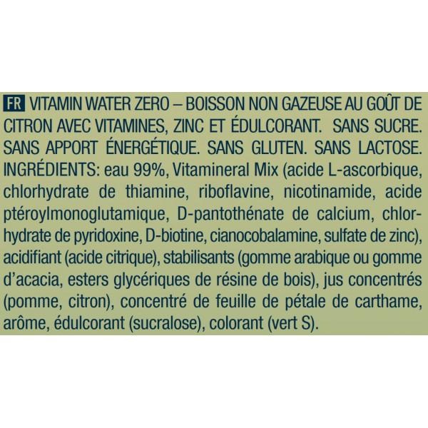 A água vitaminada zero (500 ml) é isenta de açúcar, de lactose, de glúten e de conservantes.