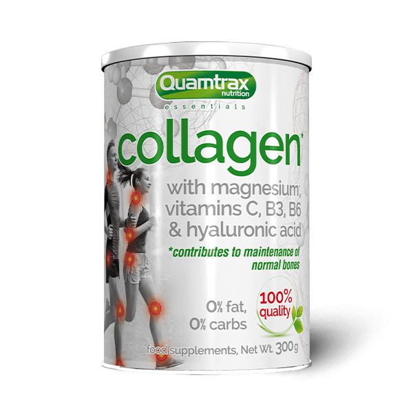 Collagen (300g) é um produto da marca Quamtrax com colagénio natural hidrolisado e carbonato de magnésio para ajudar a reduzir a dor nas articulações.