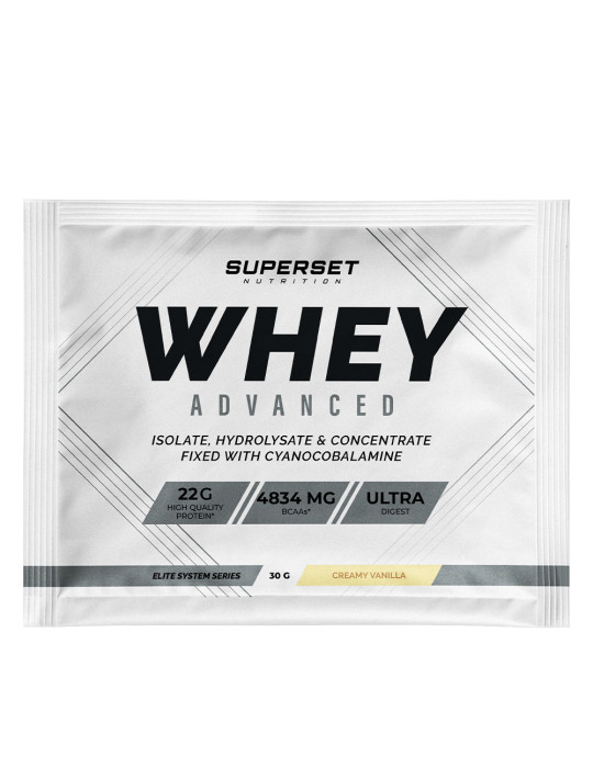 Superset Nutrition Hoje damos-lhe a oportunidade de experimentar a 100% Whey Advanced (com adoçantes) da 's num formato de 30g! Uma dose para diluir em água, leite ou leite vegetal.