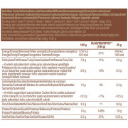 Ingredientes Avelã: proteína isolada de ervilha, proteína de arroz, L-glutamina, cacau em pó magro, intensificador de sabor (glicina e respetivo sal de sódio), L-arginina, emulsionante: lecitina(soja), farinha de quinoa 1,6%, espessantes (carragenina, goma de celulose), aromas, bagas de goji em pó 1,1%, bagas de açaí em pó 0,6%, sal, edulcorante (sucralose).
