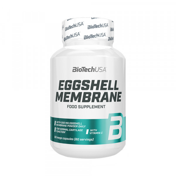 Eggshell membrane (60 caps) da BioTech USA é um suplemento alimentar à base de pó de membrana de casca de ovo.