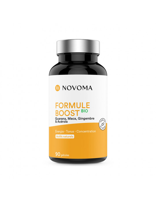 A fórmula Boost Organic da marca (90 cápsulas) Novoma é ideal para dar um impulso ao seu organismo em caso de cansaço temporário. A fórmula Organic Boost é uma combinação única dos melhores extractos de plantas com propriedades estimulantes e tonificantes. Contém 500 mg de guaraná, 300 mg de acerola, 300 mg de maca e 240 mg de gengibre.