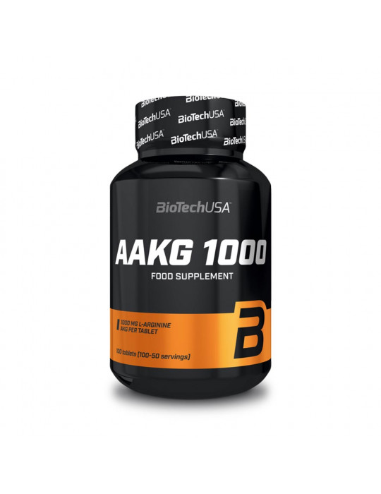 Aakg 1000 (100 caps) é um suplemento alimentar à base de alfa-cetoglutarato de L-arginina (AAKG) da marca Biotech USA.