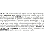 Ingredientes: Alfa-cetoglutarato de L-arginina 62,5%, agentes de volume (sorbitol, gel de celulose), agentes antiaglomerantes (sais de magnésio de ácidos gordos, dióxido de silício), revestimento [agents d’enrobage (hydroxypropylméthyl cellulose, hydroxypropyl cellulose), amidon modifié, triglycéride à chaîne moyenne, anti-agglomérant (talc), stabilisant (polyéthylène glycol)].