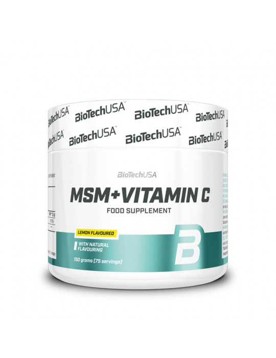 Msm + vitamina C (150g ) é um suplemento alimentar em pó com edulcorante da marca Biotech USA.