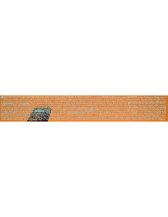 Ingredientes Manteiga de Amendoim com Chocolate: Cobertura de chocolate de leite com edulcorante 31% [edulcorante (maltitóis), manteiga de cacau, leite gordo em pó, massa de cacau, emulsionante: lecitinas(soja), aroma natural], cobertura de caramelo 18% [agente de volume (polidextrose), leite condensado, manteiga de cacau, humectante (sorbitol), emulsionante (mono e diglicéridos de ácidos gordos), aroma natural, água, sal, corante (caramelo simples)], proteína de leite, hidrolisado de colagénio, soja extrudida com cacau 8,6% (isolado de proteína de soja, amido de tapioca, cacau em pó), humectante (glicerol), água, isolado de proteína de soja, amendoins 2,4%, pasta de amendoim 1,5%, óleo de coco, sal, aroma natural, cacau em pó magro, aroma, corante (caramelo simples)
