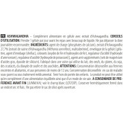 [extrait de racine d’Ashwagandha (Withania somnifera), maltodextrine] [gélatine, agent d’enrobage (shellac), colorants (oxydes de fer et hydroxydes de fer), régulateur d’acidité (hydroxyde d’ammonium), régulateur d’acidité (hydroxyde de potassium)]Ingredientes: agente de volume (fosfatos de cálcio), extrato de Ashwagandha 27,7%, invólucro da cápsula, agentes antiaglomerantes (sais de magnésio de ácidos gordos, dióxido de silício).