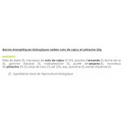 A barra com sabor a caju e pistáchio é uma barra saborosa que ajuda a compensar as perdas minerais. O seu elevado teor de hidratos de carbono combinado com BCAA (isoleucina, leucina, valina) ajuda a reduzir a fadiga muscular. É também rica em vitamina C natural (48 mg*) e em spirulina para combater o stress oxidativo. Pensa-se também que a spirulina contribui para o metabolismo muscular e favorece a circulação do oxigénio no sangue. Por fim, a barra de sal contém minerais como o magnésio (82,5 mg*), o fósforo (175 mg*) e o ferro (2,1 mg*). Todos essenciais para o bom funcionamento do organismo!