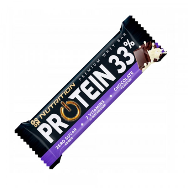 Protein Bar 33% também contém vitaminas, incluindo 33 mg de vitamina C, 4,9 mg de vitamina E, vitamina B12, 6,8 mg de niacina, 0,45 mg de tiamina e 2,5 mg de ácido pantoténico. A vitamina C ajuda a manter o funcionamento normal do sistema imunitário durante e após o exercício físico intenso. A vitamina E ajuda a proteger as células contra o stress oxidativo. O ácido pantoténico contribui para o normal metabolismo energético.