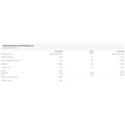 Ingredientes - Sabor a bolachas e natas: maltodextrina 47%, concentrado de proteínas de soro de leite, inulina 7%, amido de milho 5%, creatina mono-hidratada micronizada 5%, aromas, caseinato de cálcio (contém leite), espessante (goma de celulose), chocolate em pó [massa de cacau, manteiga de cacau, cacau em pó magro, emulsionante : lecitinas(soja), aromatizante], emulsionante: lecitinas(soja), proteína isolada de soro de leite, sal, canela, edulcorante (sucralose).
