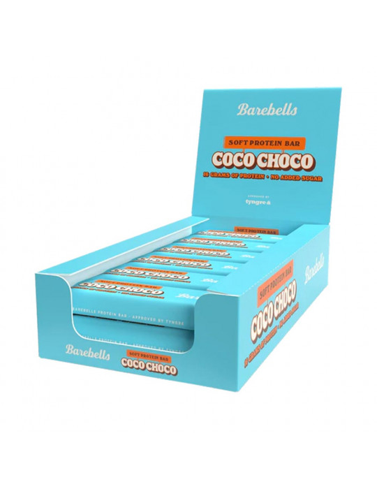As caixas Soft Protein Bar contêm 12 barras de proteínas, cada uma com 55 g, da famosa marca Barebells.