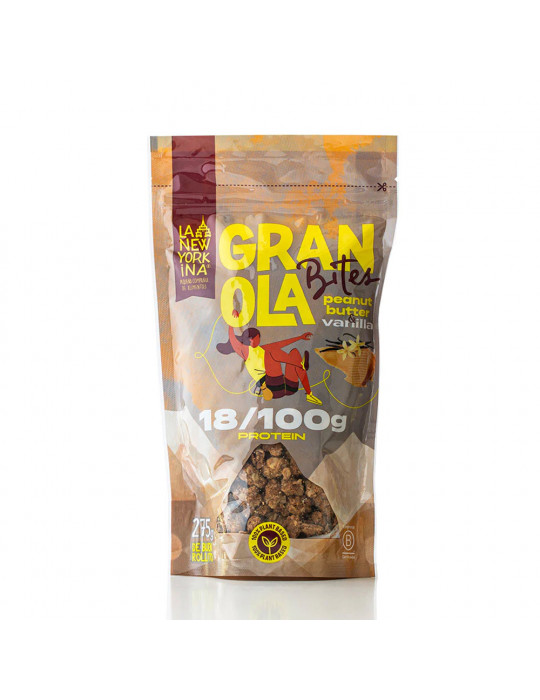 Como o seu nome indica, a granola sabor chocolate com manteiga de amendoim 70% é feita com 70% de cacau. Se é fã de chocolate, esta é a granola ideal para si! A granola de manteiga de amendoim e baunilha é uma mistura inteligente de manteiga de amendoim e um toque perfeito de baunilha. La New Yorkina oferece granolas feitas com produtos à base de plantas e ingredientes tão simples e crus quanto possível.