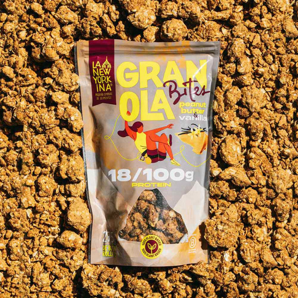 É uma verdadeira explosão de sabores entre manteiga de amendoim, baunilha e chocolate. La New Yorkina propõe uma granola proteica criada com 18 g de proteínas para o sabor manteiga de amendoim baunilha e 20 g de proteínas para o sabor manteiga de amendoim chocolate 70%. Esta granola é 100% vegetal, feita com proteína de ervilha. Como atleta, comer uma granola proteica é muito útil. A proteína ajuda a manter e a aumentar a massa muscular.