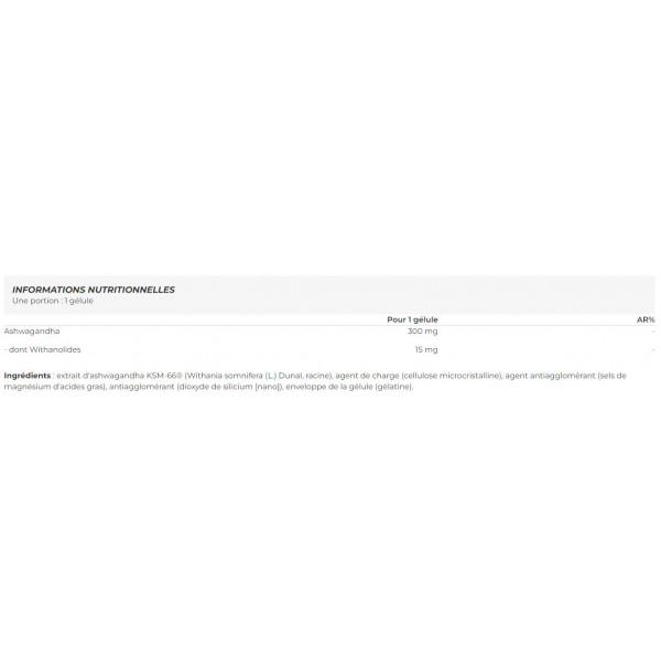 Cada cápsula contém 300 mg de extrato de raiz de ashwagandha.