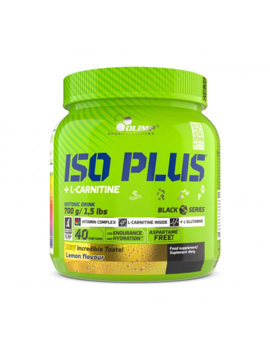 Iso plus + L-carnitina (700g) é uma bebida isotónica fabricada pela marca Olimp Sport Nutrition.